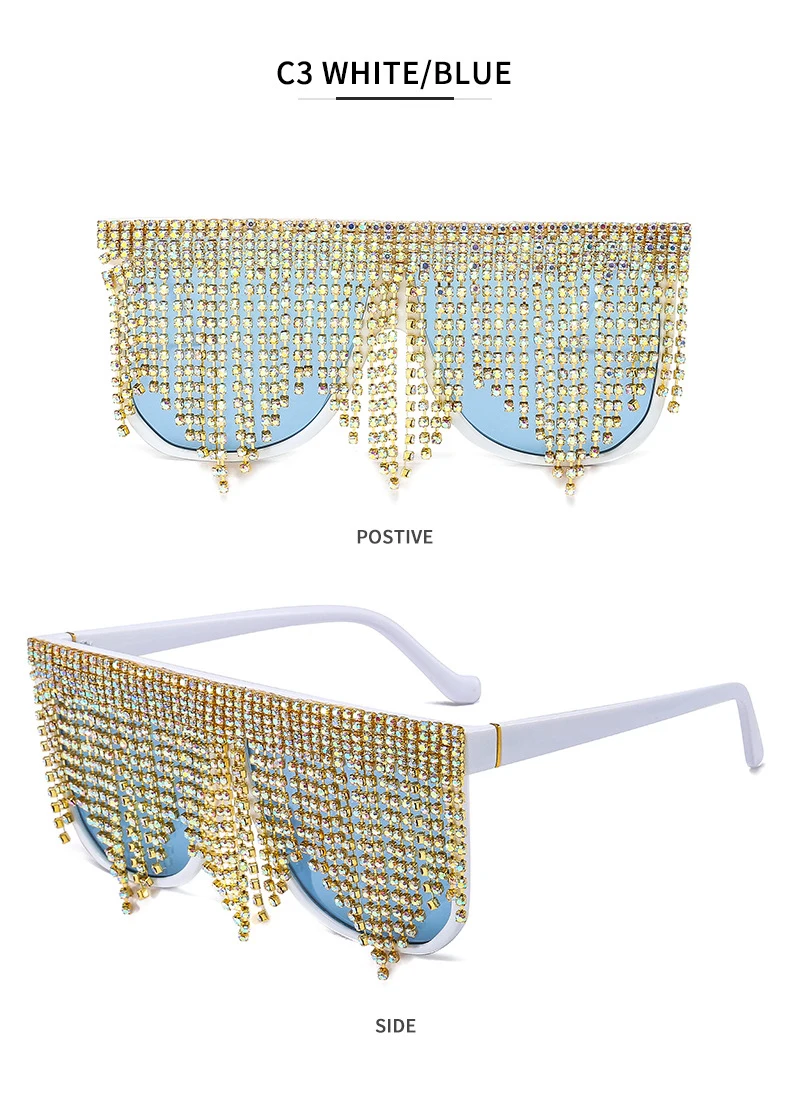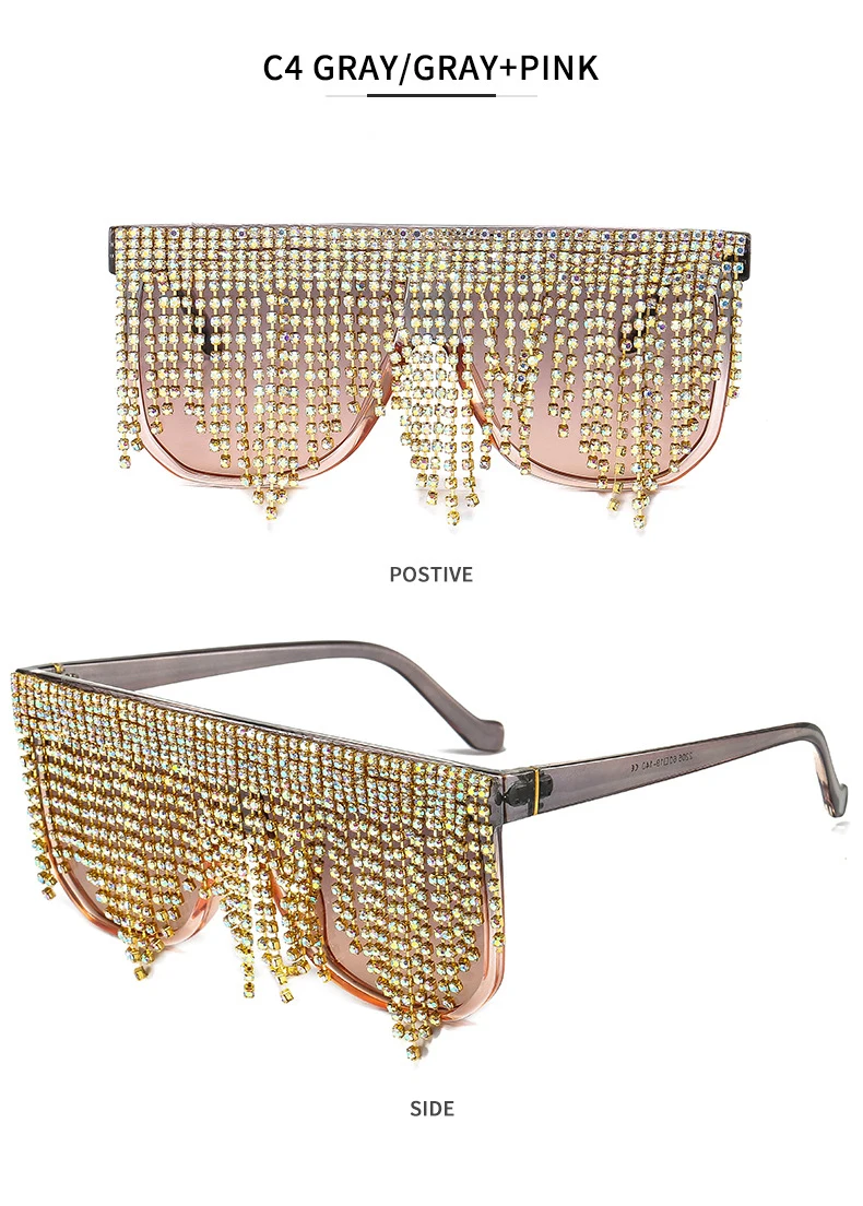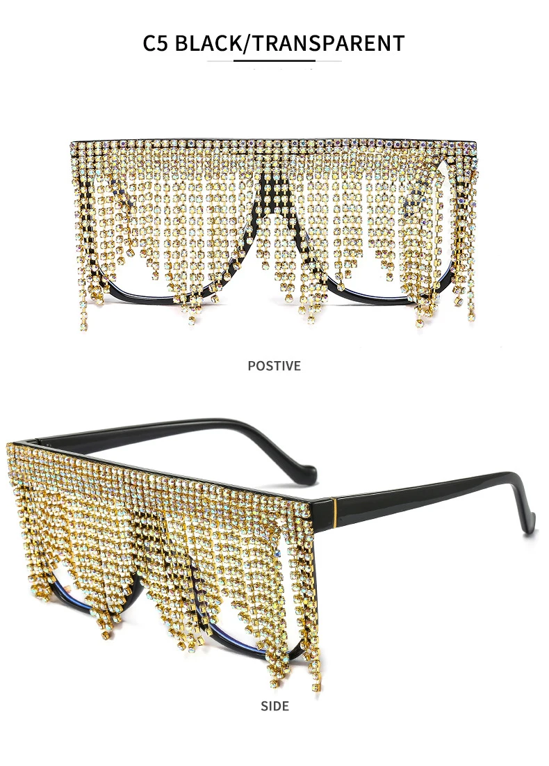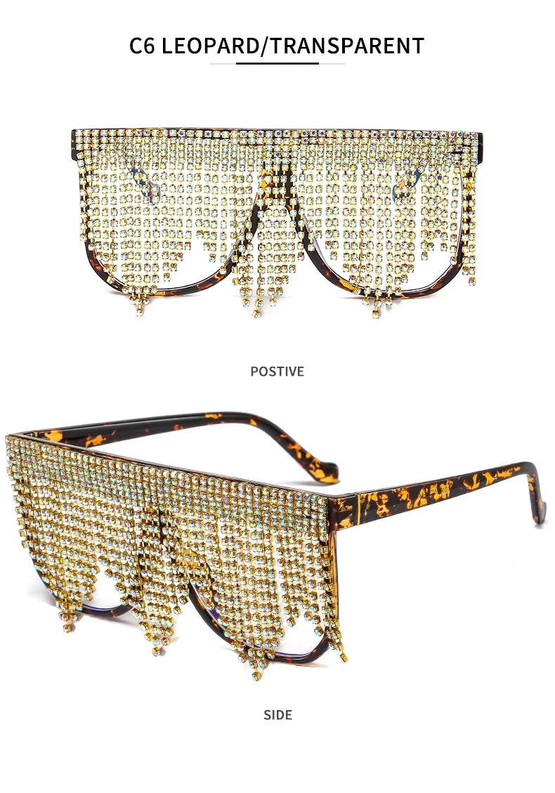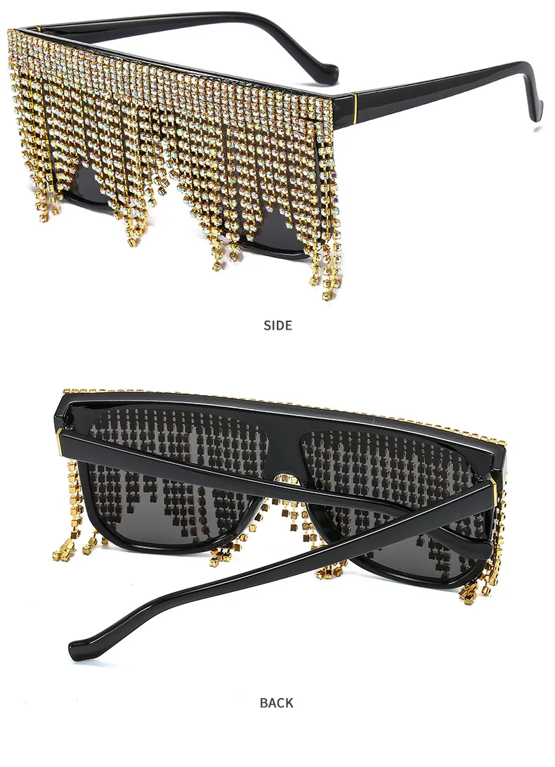 Oversized Frame Tassel Sunglasses Women 2023 UV400 Crystal  Lady's Eyeglasses Men  Brand Designer Sunglasess Women