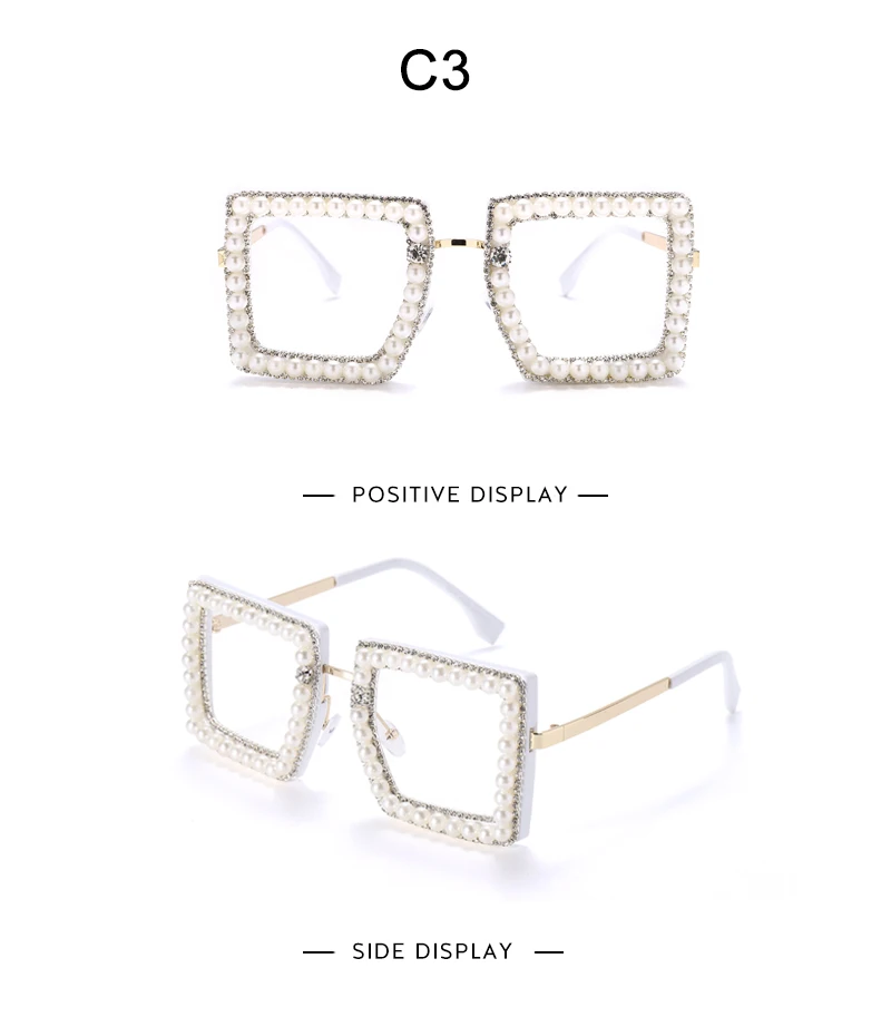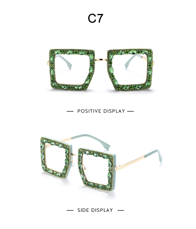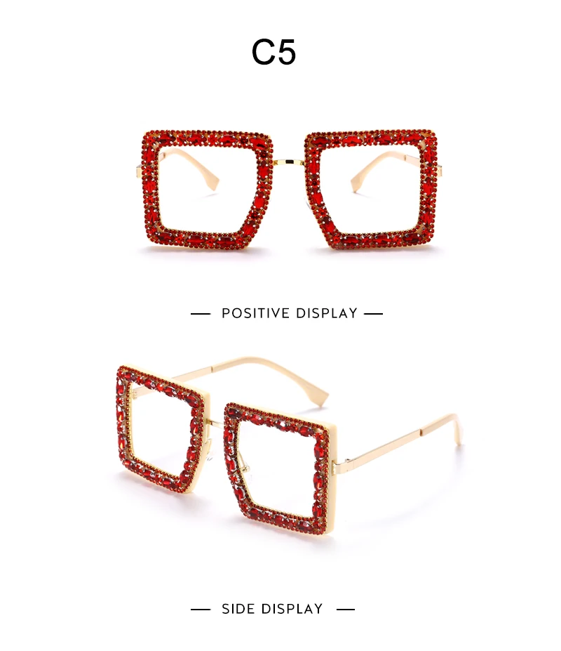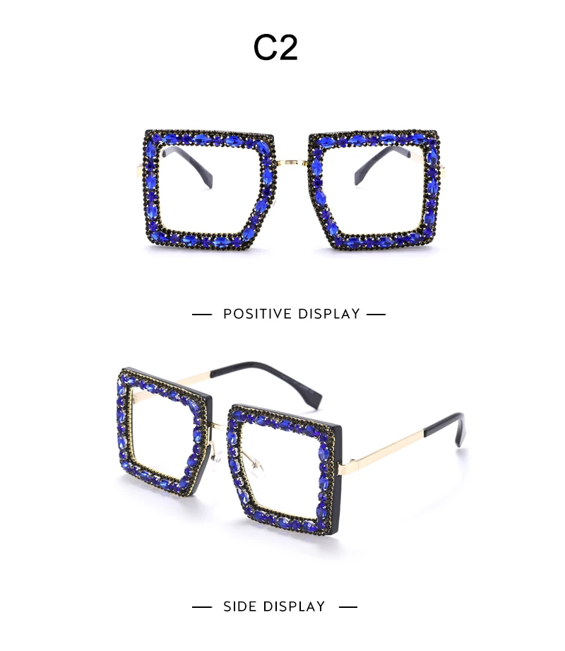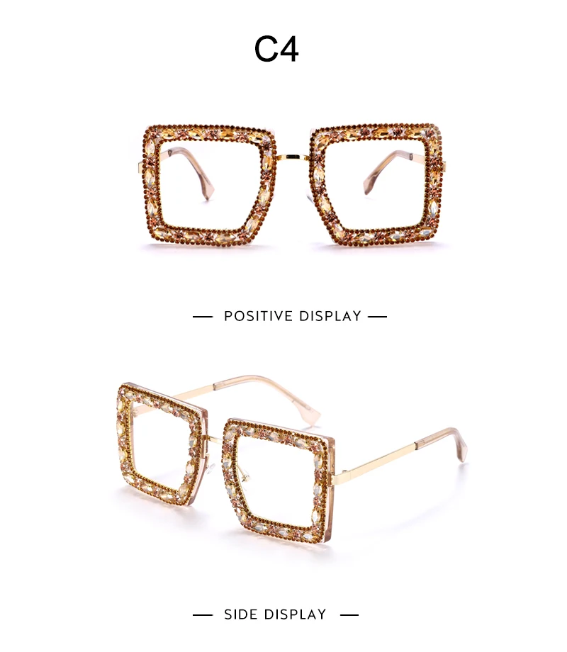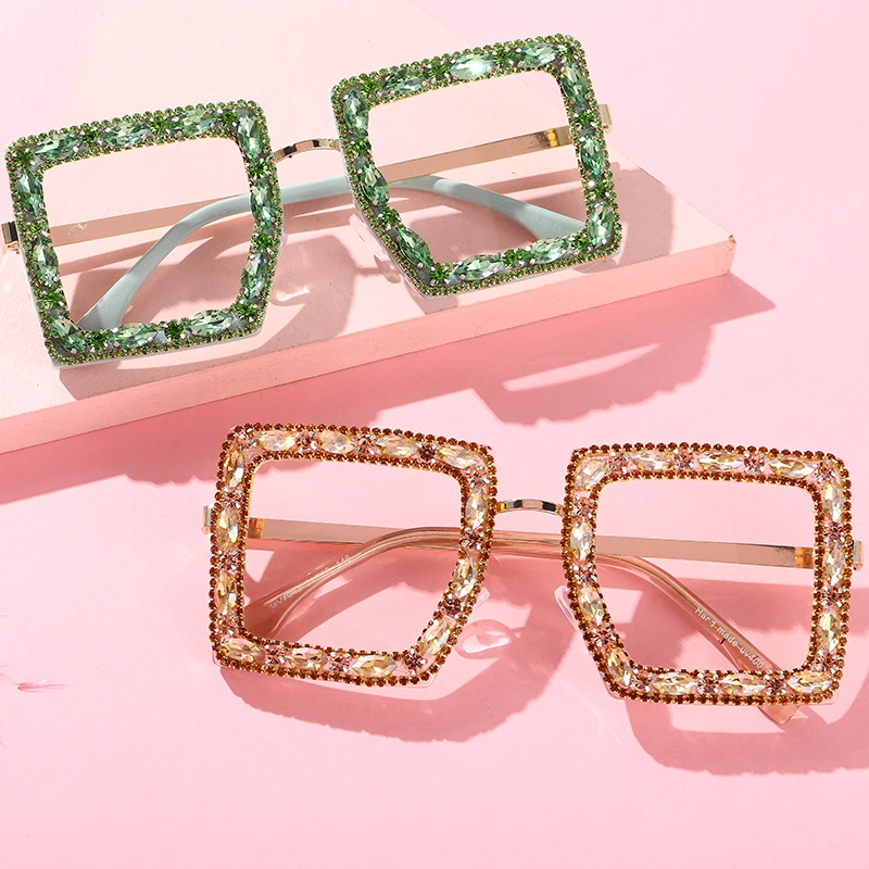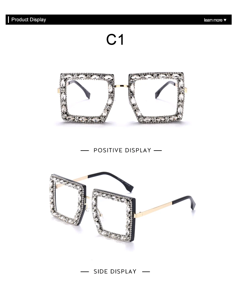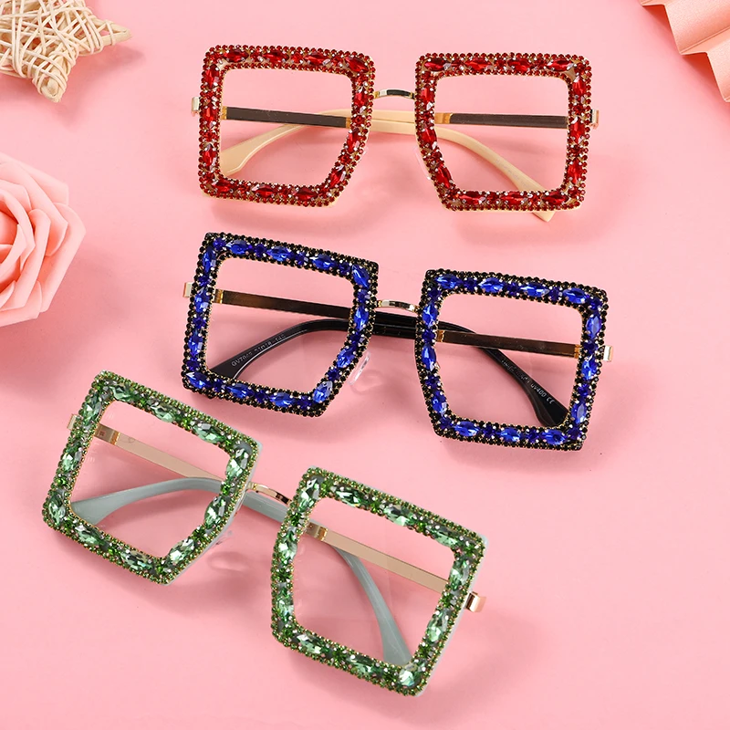 Oversized Square Eyeglasses Women Crystal Sunglasses Frames UV400 Shiny Rhinestone Eyegwear Spectacle Frames Decorations