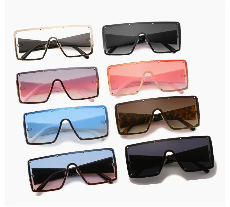 Oversized Square Sunglasses Women Retro Gradient Big Frame Sun Glasses Female One Piece Gafas Shade Mirror Clear Lens