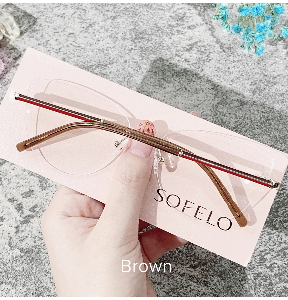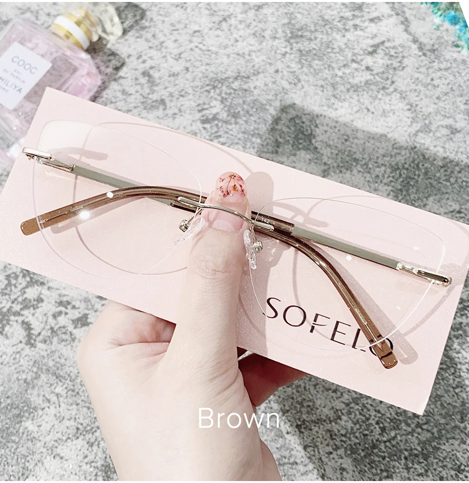 Rimless Cat Eye Prescription Eyeglasses Frame Women Myopia Optical Glasses Frame Ladies Clear Spectacles Frame Brand