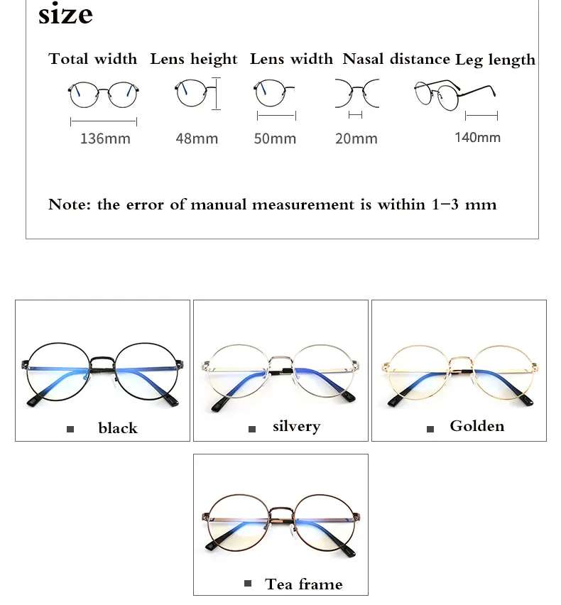 Round Glasses frame retro FemaleTransparent for Computer Lenses Metal Frame Eyeglasses Women Men Anti Blue Ray Oculos De Grau Sp