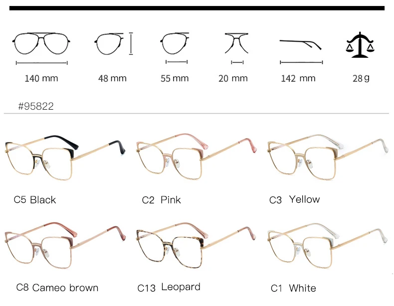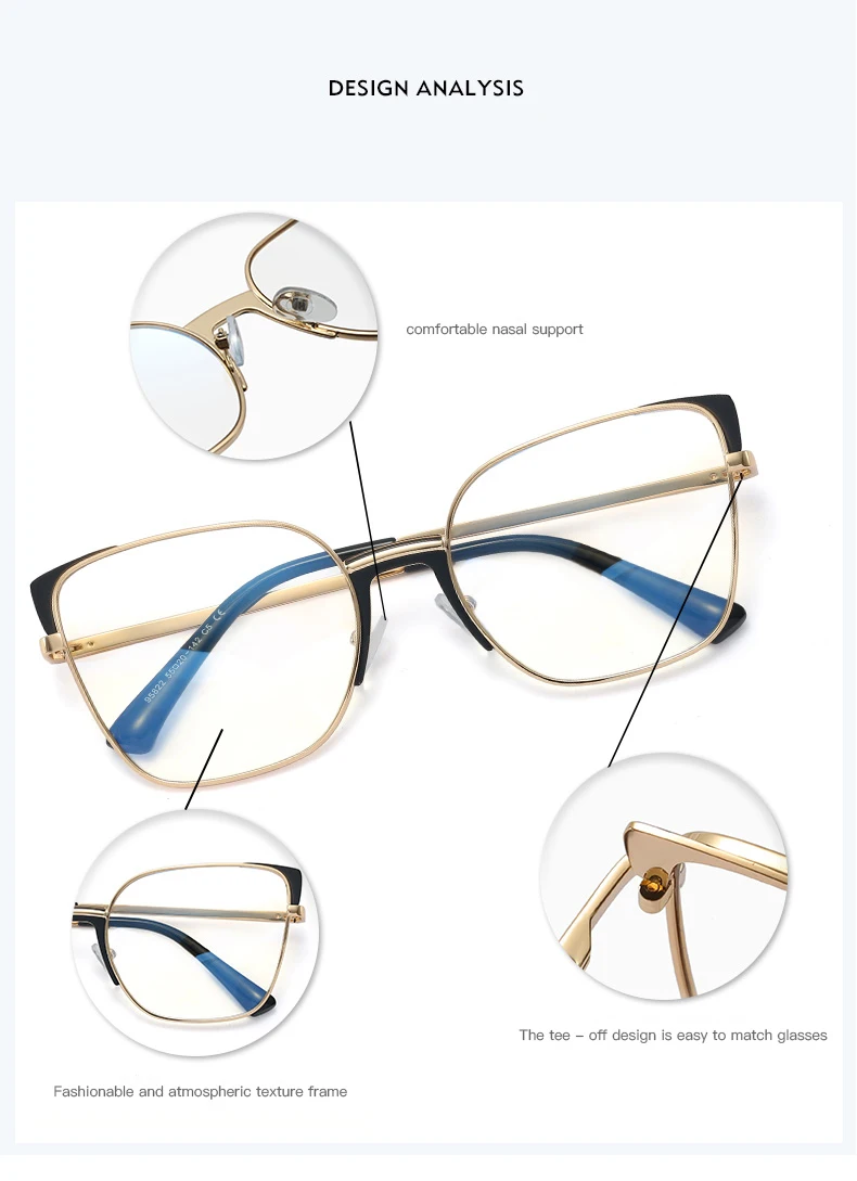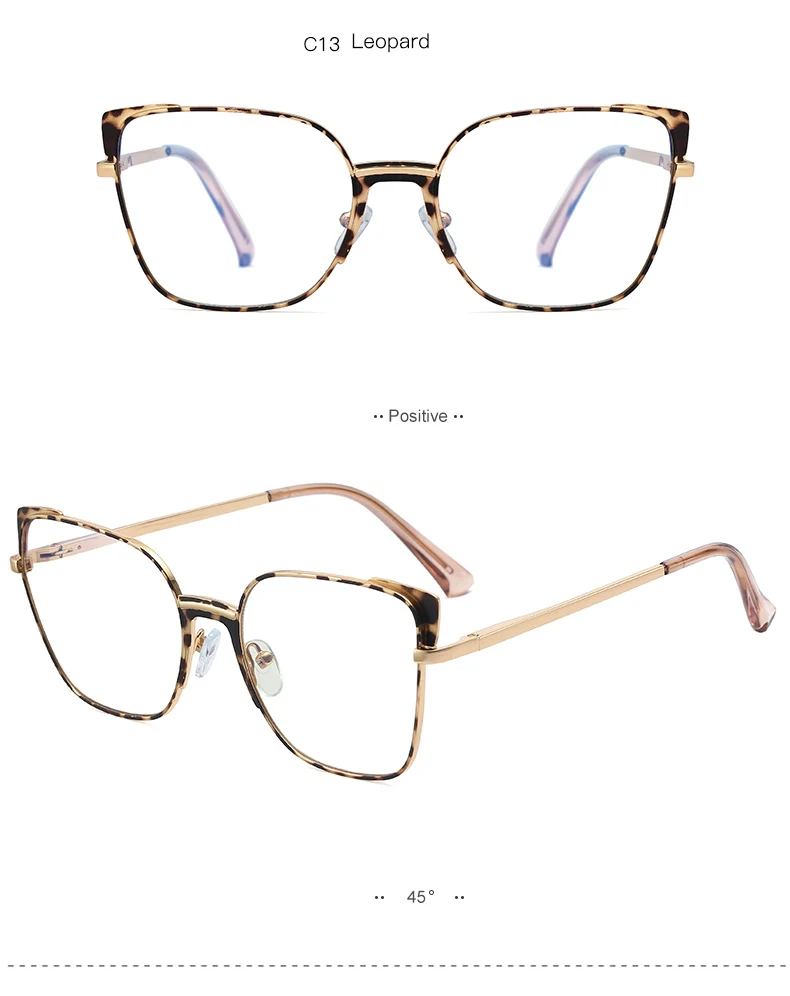 Sexy Leopard Women's Cat Eye Glasses Frame Design Oversized Decorative Glasses Woman Metal Anti Blue Light Spectacles