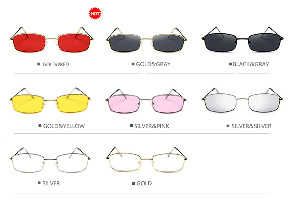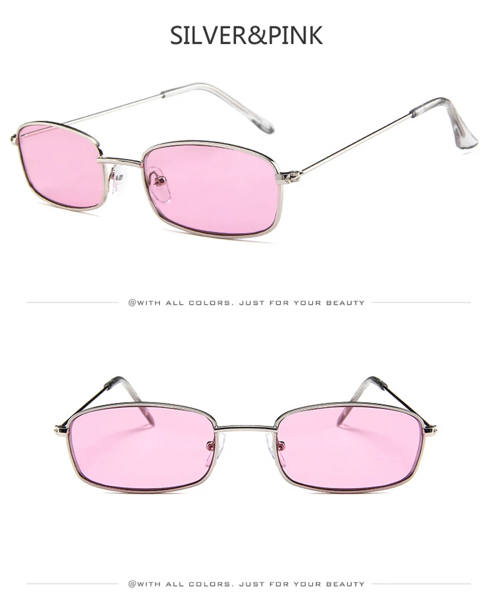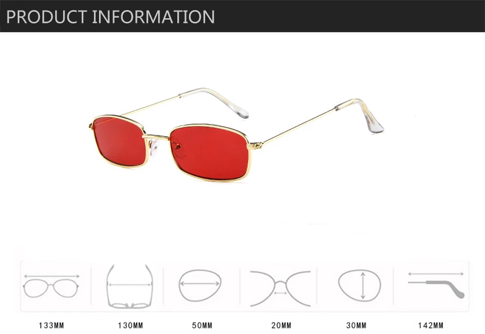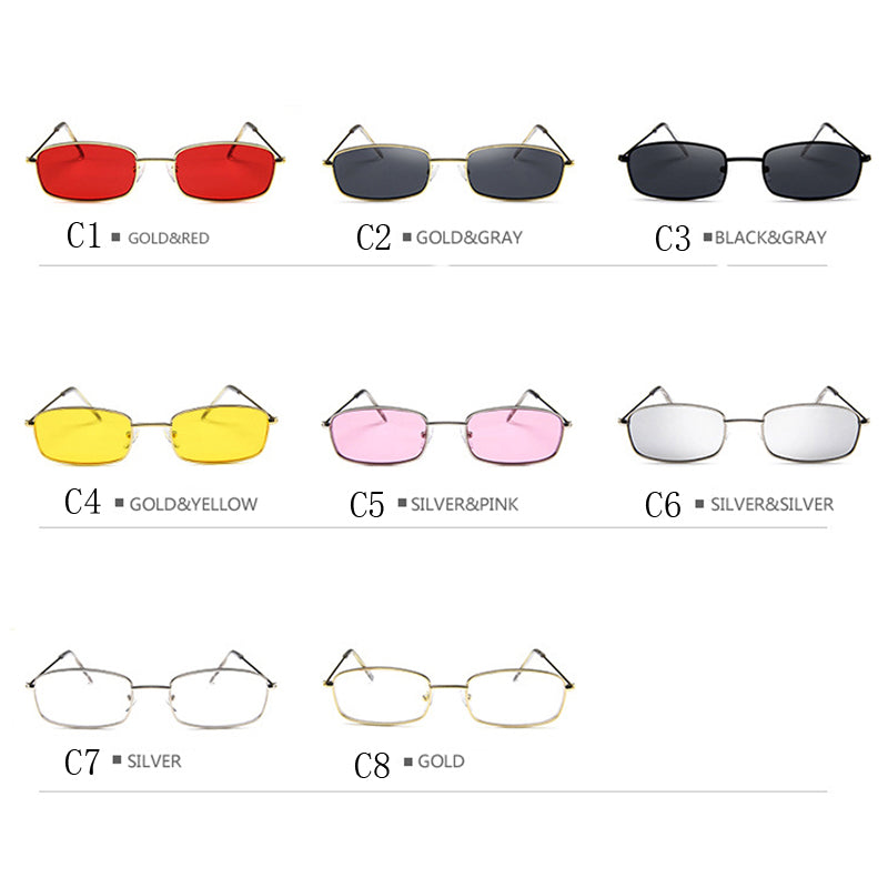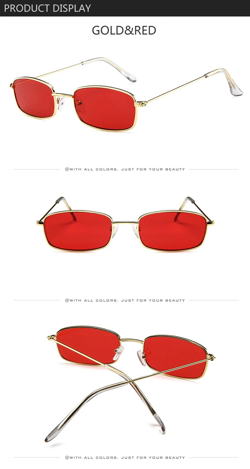 Small Square Sunglasses for Women Men Retro Red Sun Glasses Transparent Clear Lens Glasses Metal Frame Shades Eyewear