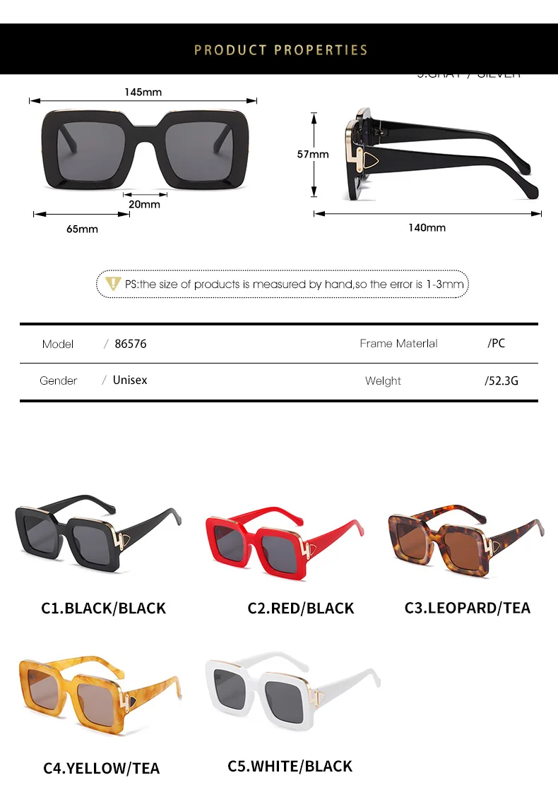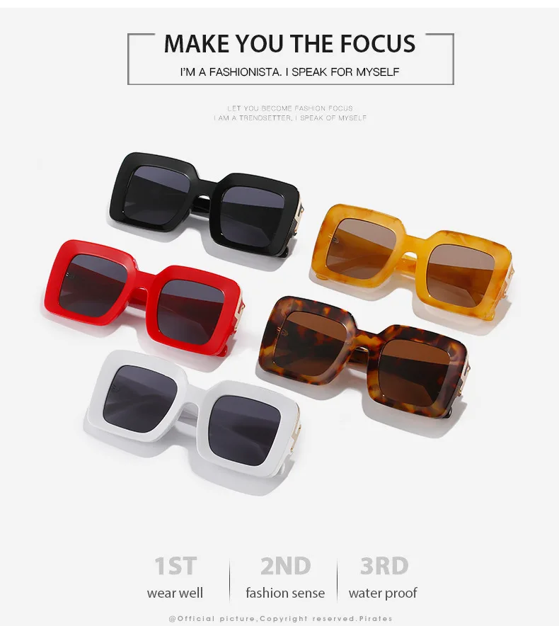 Square Full Rim Thick Flat Classic Punk Sunglasses 2023  Designer Summer Large Frame Glasses UV400 Lunette Femme