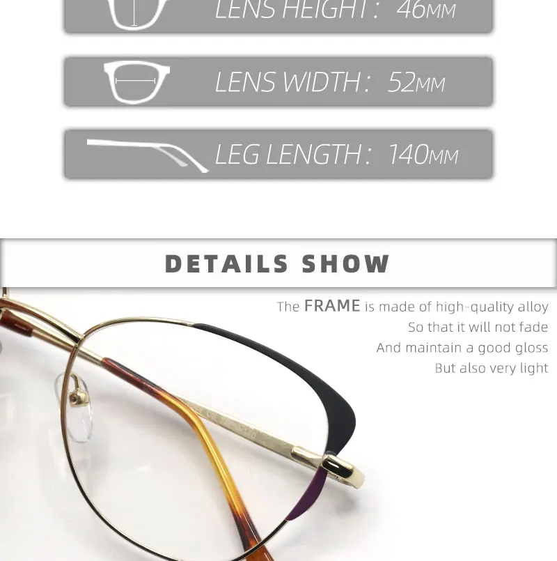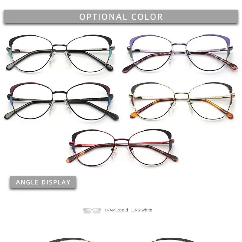 Square oval cat eye metal eyeglasses frames decorative clear fake glasses women diopters brand design