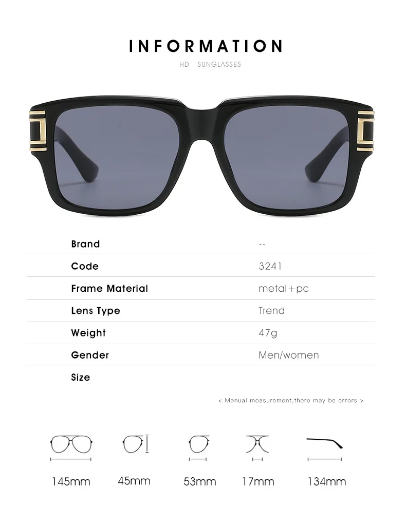 Square Sunglasses Women Big Frame Glasses Retro Sunglass Men Brand Design Eyewear UV400 Sun Glass Outdoor Shades