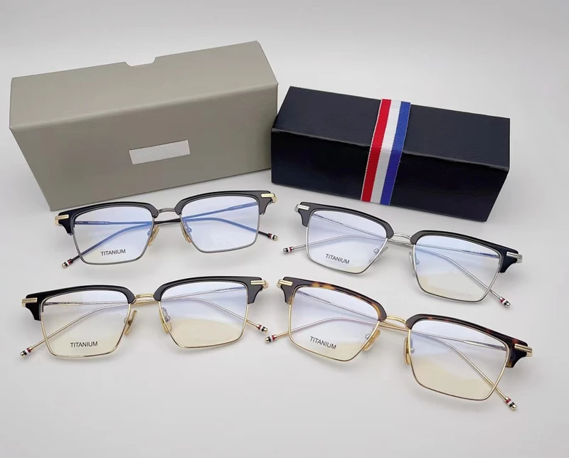 Thom Brand Designer Titanium Acetate Half Frame Glasses Men Women Square Semi Rimless Eyeglasses Optical Prescription Eyewear