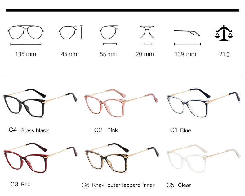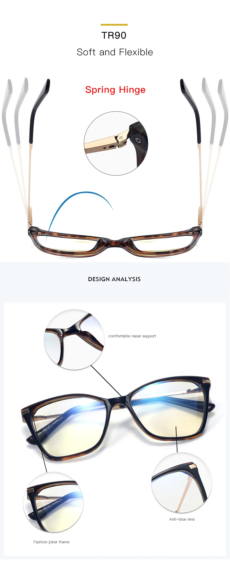 Women Glasses Frame Optical UV400 Prescription Eyewear  Anit-Blue Ray Woman Female Spectacles Anti-Scratch Coating