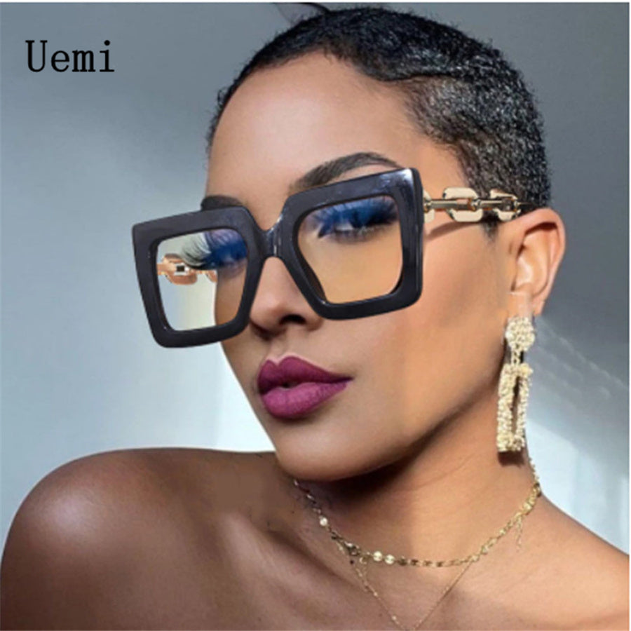 Women High-quality Oversized Frame Glasses Square Plain Glasses Optical Spectacle Anti Blue Light Computer Glasses F