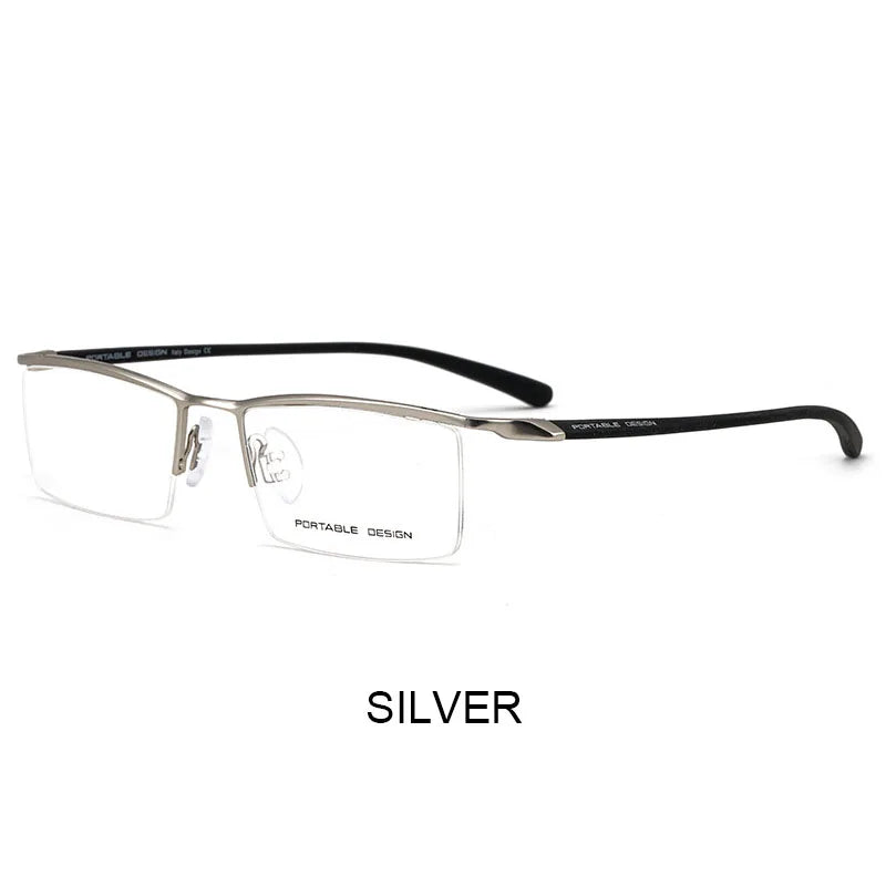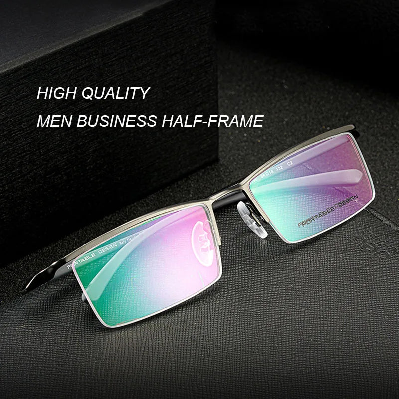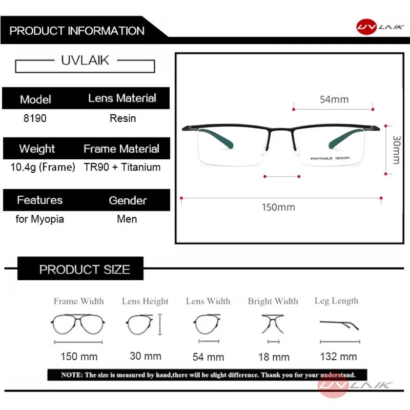 UVLAIK Men Business Half Frame Titanium Alloy Glasses Frame Leisure Ultra-light Myopia Eyeglasses Optical Eyebrow Wire Frame