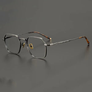 Titanium Top-End-Quality Classical Glasses Frame Men Designer Brand Retro Vintage Square Eyeglasses Silver Tortoise Eyewear