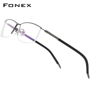 FONEX Pure Titanium Eyeglasses Frames Men Half Square Myopia Optical Prescription Glasses Semi Rimless Eyewear F1015