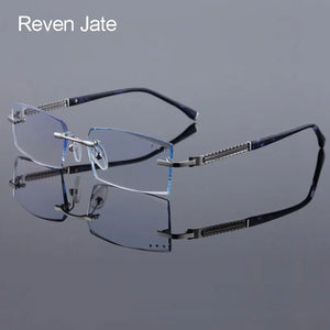 Reven Jate 58130 Pure Titanium Rimless Diamond Cutting Man Glasses Frame Optical Prescription Eyeglasses Men Eyewear Fashion
