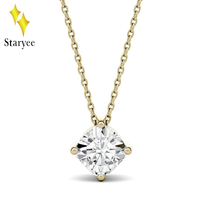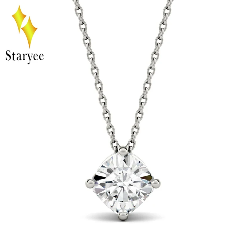 18K Solid Rose Gold 0.5CT Cushion Moissanite Necklaces for Women Gold Chain Solitaire Engegament Wedding Brand Diamond Pendant