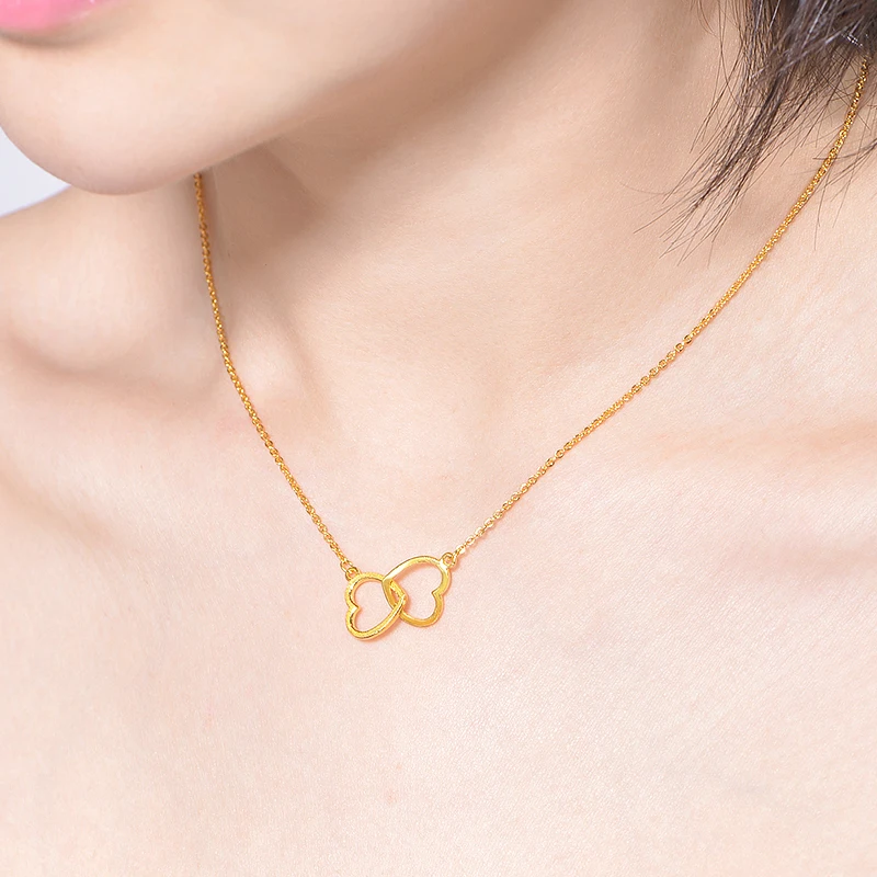 2017 New Arrival Necklace Genuine 24K Pure Gold Heart Pendants Necklaces Elegant Beautiful Graceful Necklace Simple Fine Jewelry