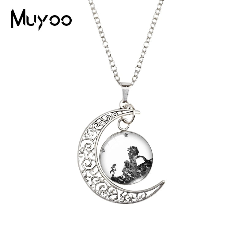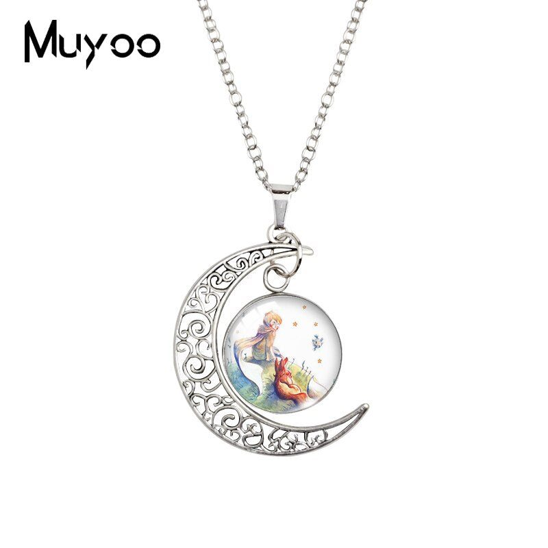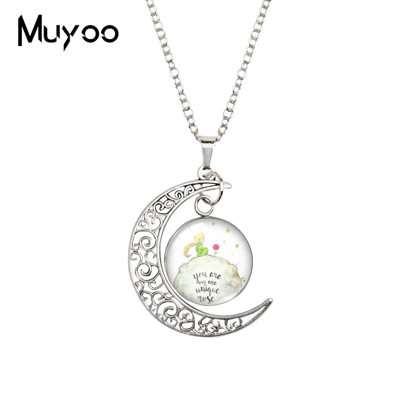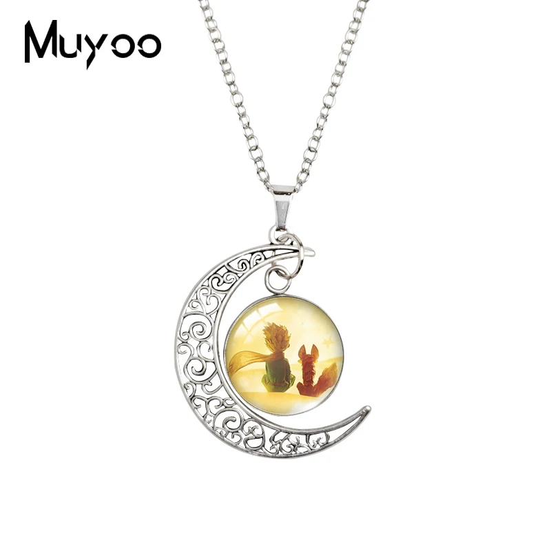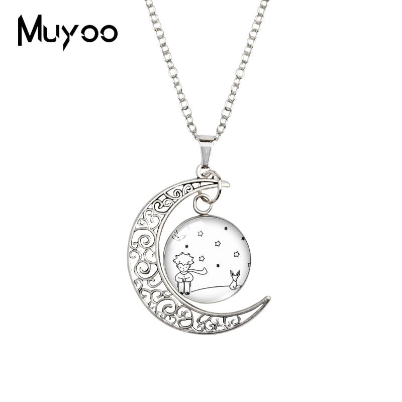 2020 New The Little Prince Moon Necklace Printed Photo Pendant Glass Cabochon Necklaces 20mm Round Jewelry