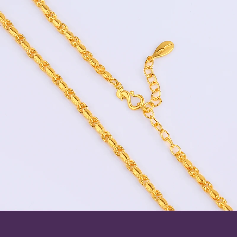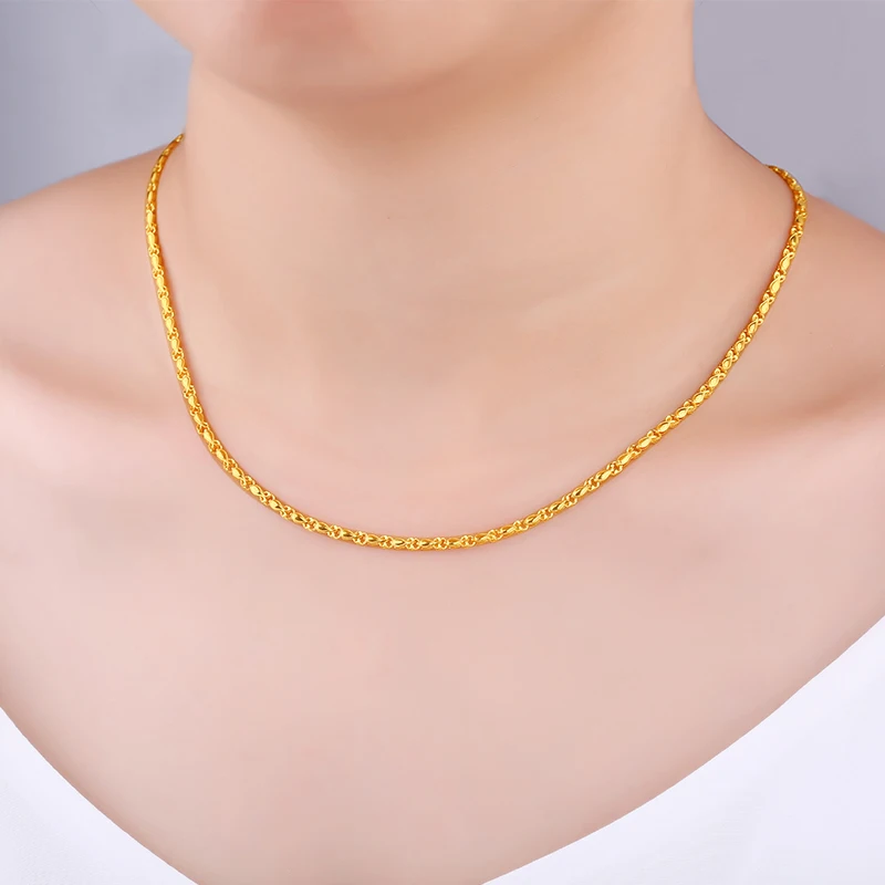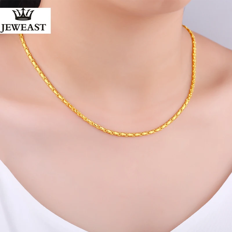 24K Pure Gold Necklace Real AU 999 Solid Gold Chain Smooth Simple Upscale Trendy Classic Party Fine Jewelry Hot Sell New 2018