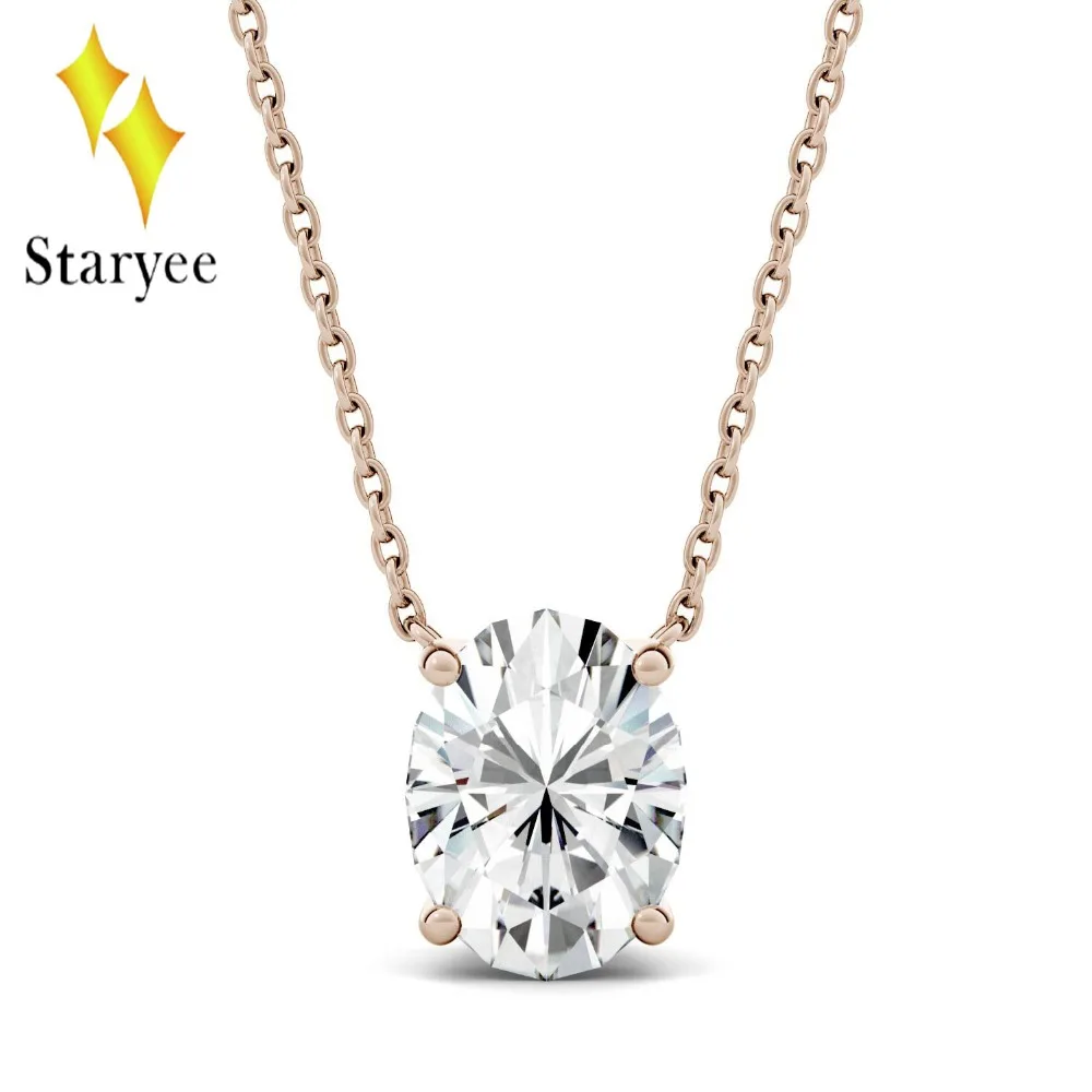 Certified 18K 750 Yellow Gold Pendant Oval Cut Lab Grown Moissanite Diamond Pendant Solitaire Necklace for Women Fine Jewelry