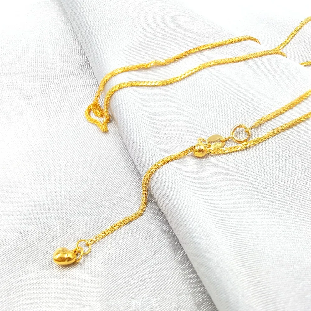 18K Gold Chopin Chain Adjustable Pure Yellow Gold Necklace 45cm Au750 Wendding Party Gift