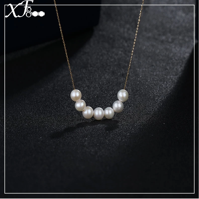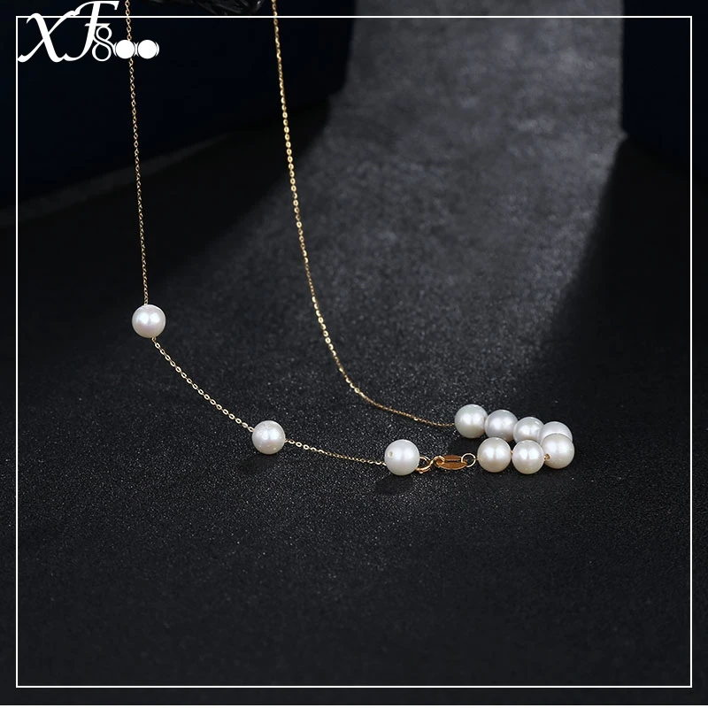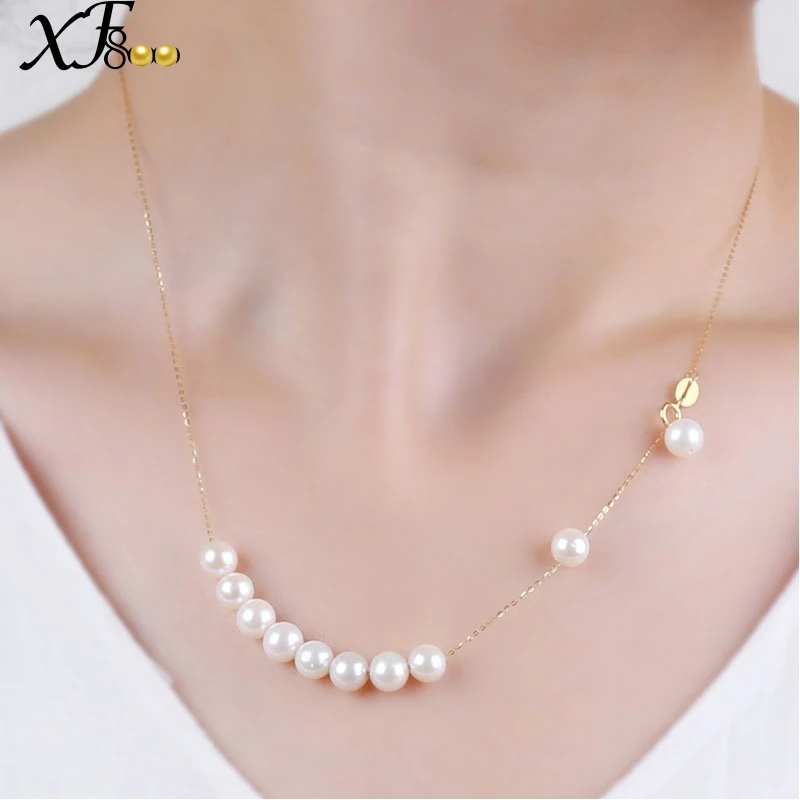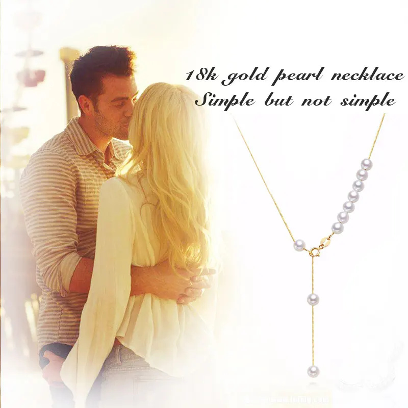 Brand 45cm AU750 18K Yellow Gold Pearl Jewelry Round Shape Pearl Necklace for Engagement X234