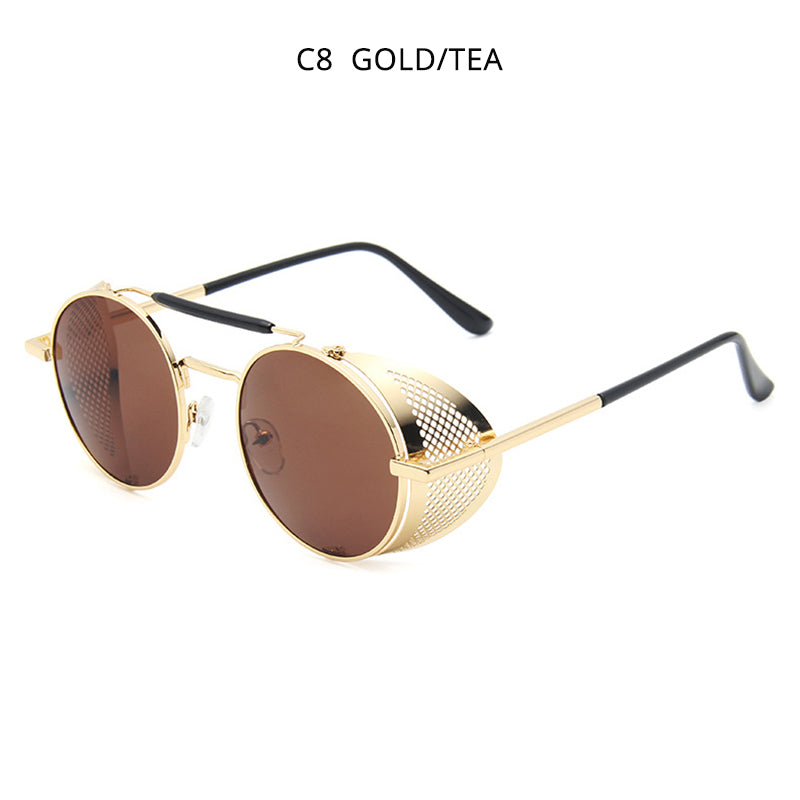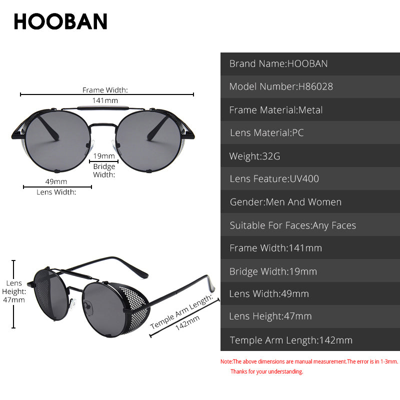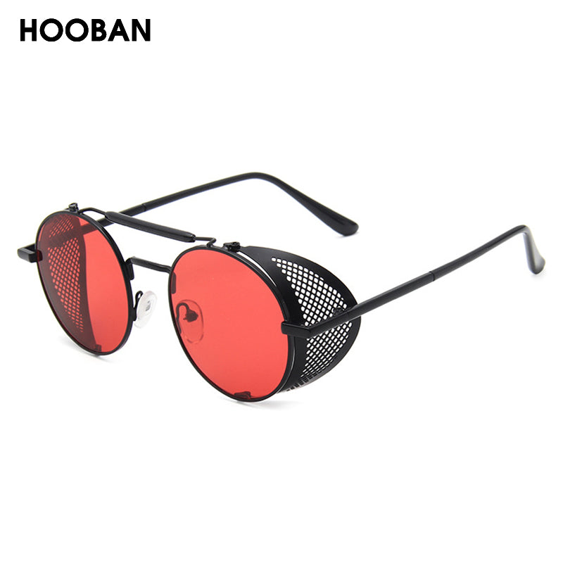 HOOBAN Steampunk Round Sunglasses Men Women Retero Gothic Metal Male's Sun Glasses Brand Designer Eyeglasses Unisex