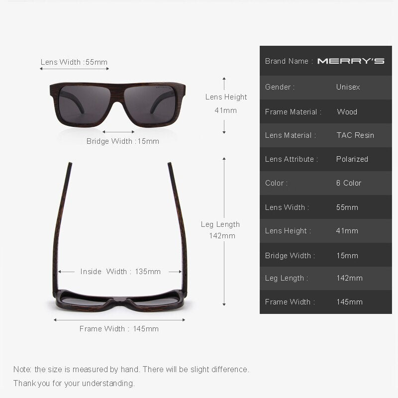 MERRYS DESIGN Men Wooden Sunglasses Square Polarized Sun Glasses HAND MADE 100% UV Protection S5066