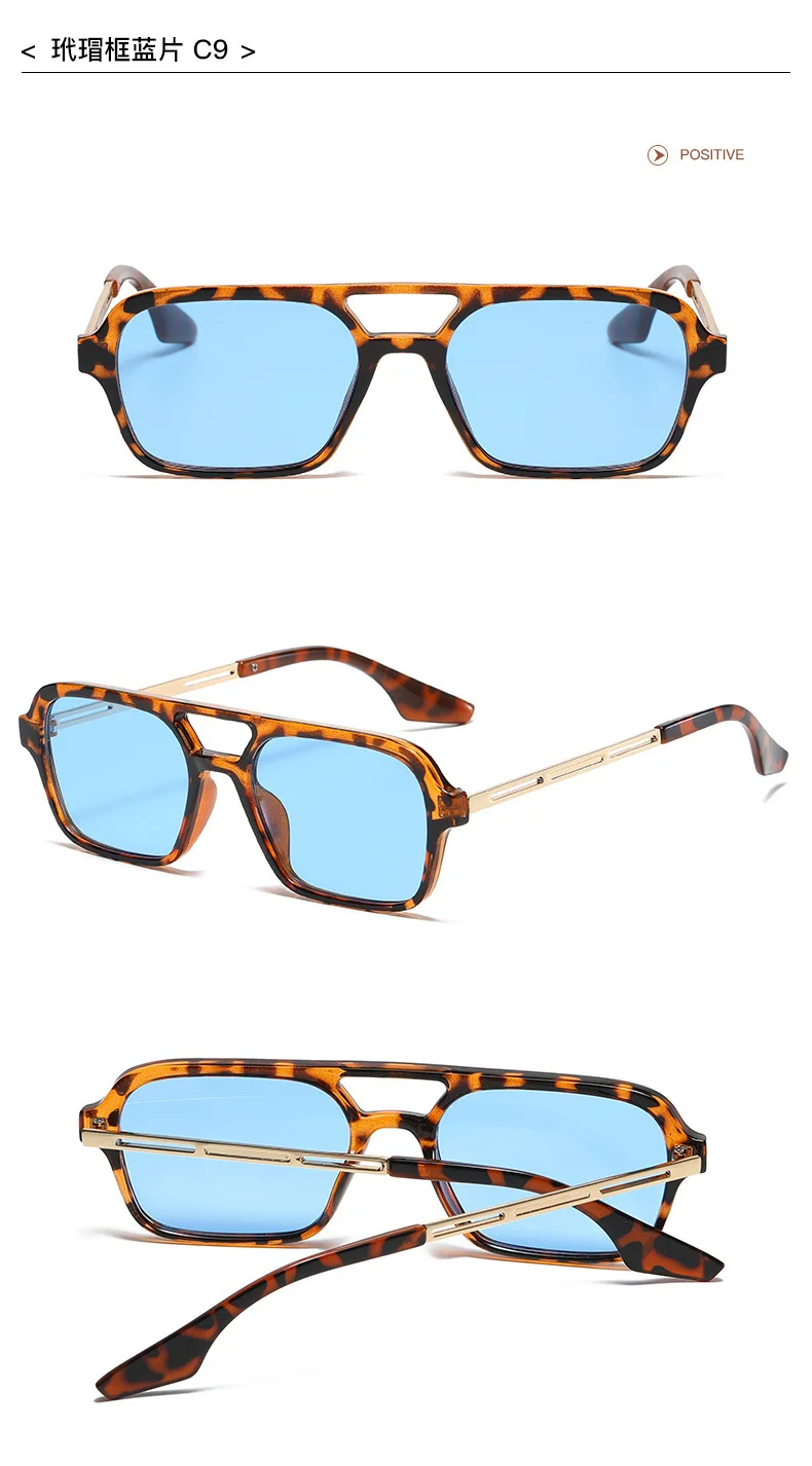 Retro Double Bridges Women Sunglasses Brand Designer Eyewear Trending Hollow Leopard Blue Sun Glasses Men Women Shades
