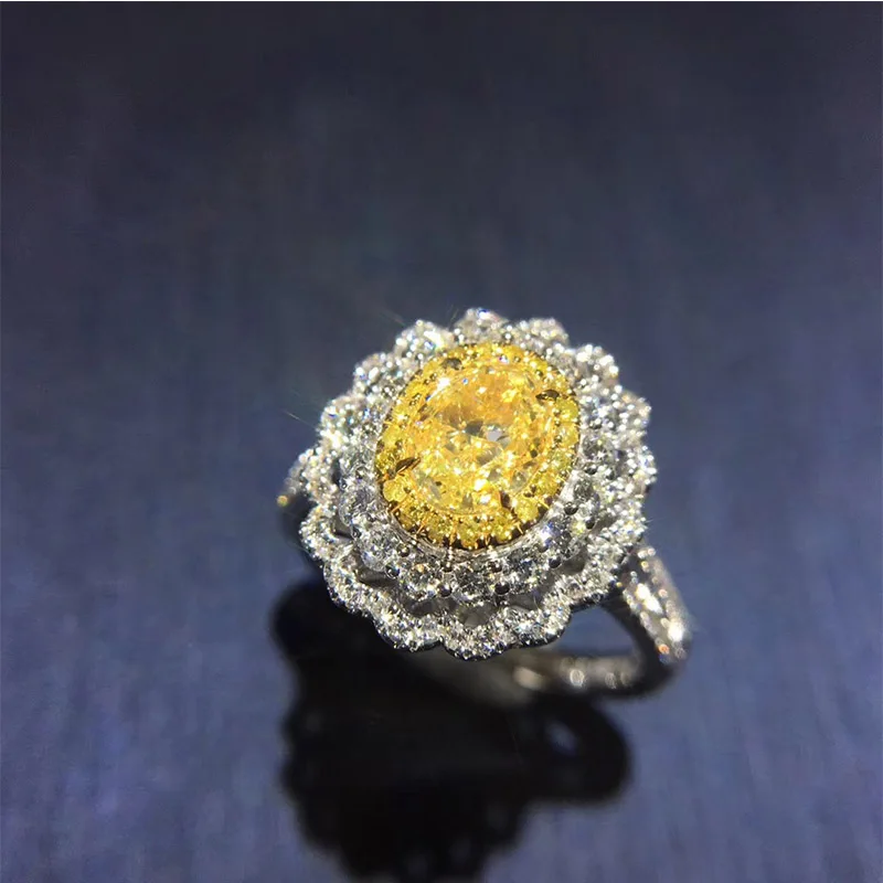 ANI 18K White Gold (AU750) Women Wedding Ring Certified Classic 1 CT Oval Cut Natural Yellow Diamond Fine Jewelry Customized