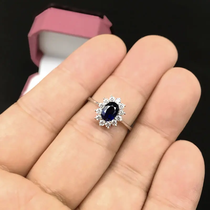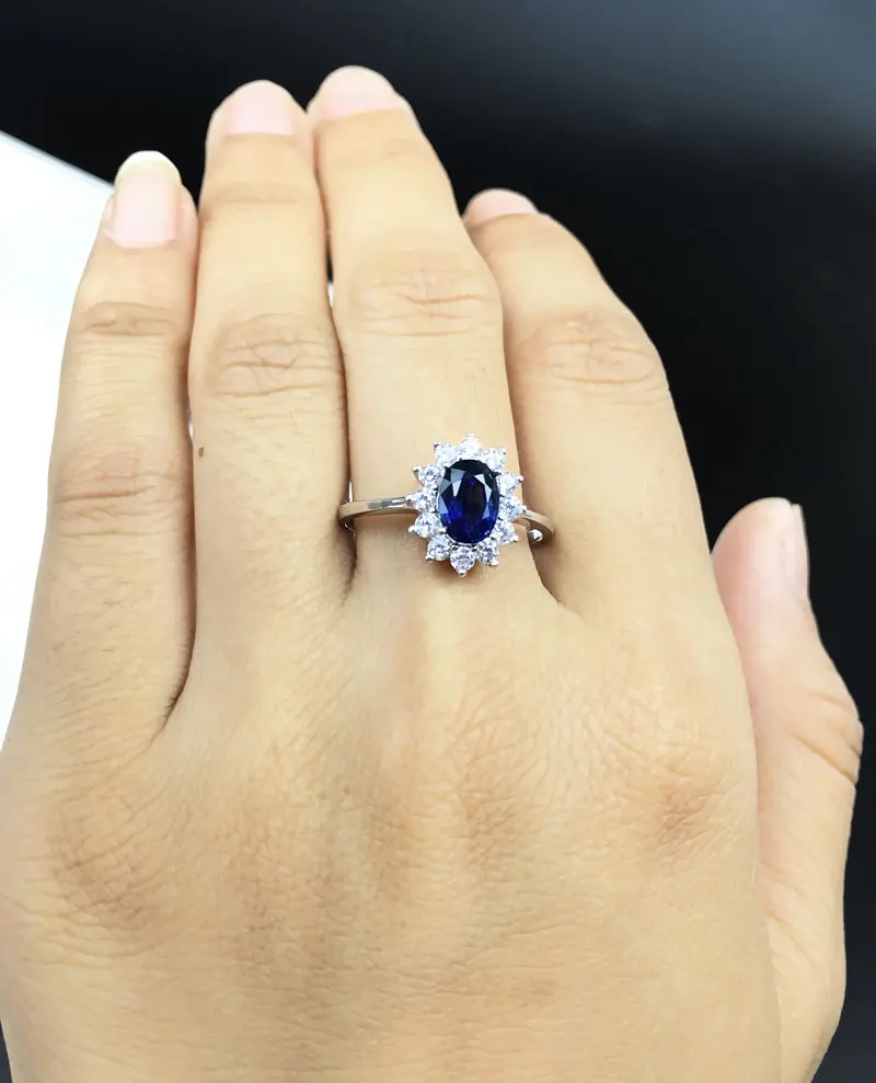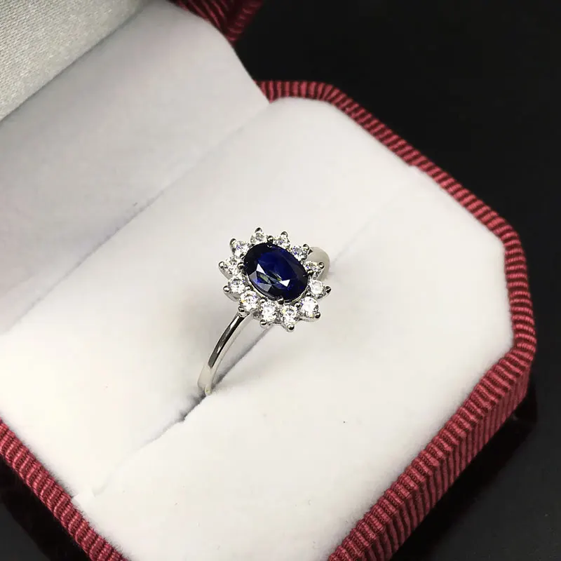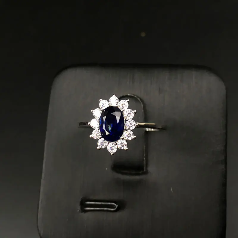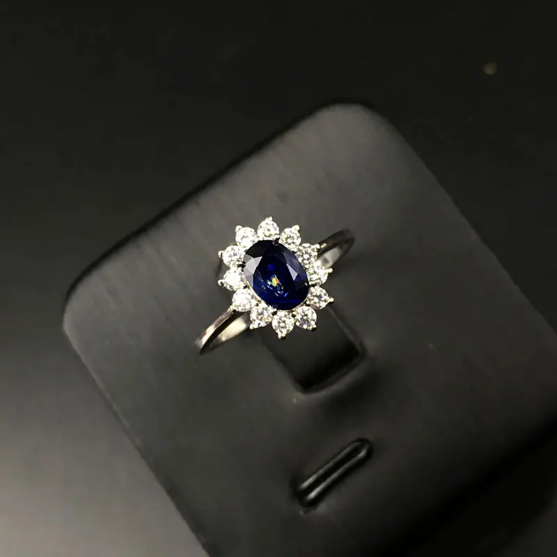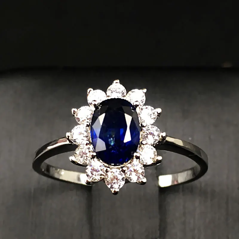Women Natural Sapphire Stone Ring Genuine Solid Silver Gem Jewelry Sun Flower Shape Rings