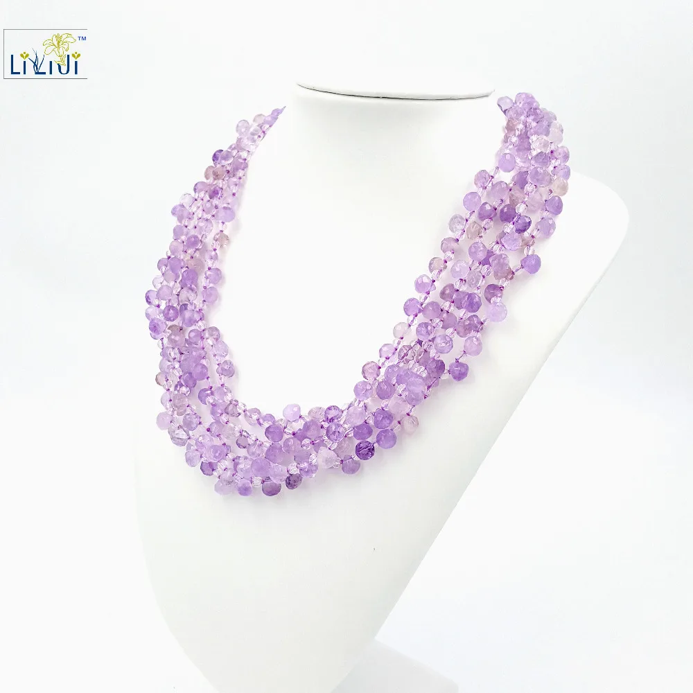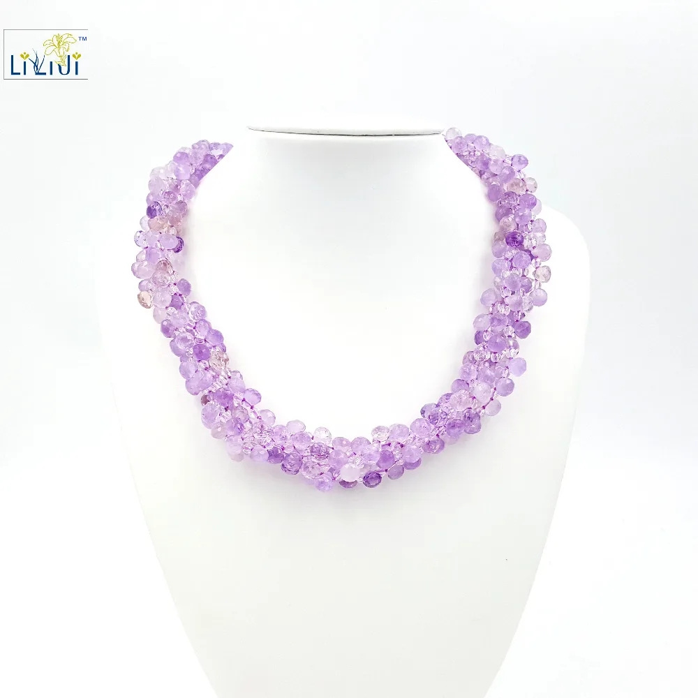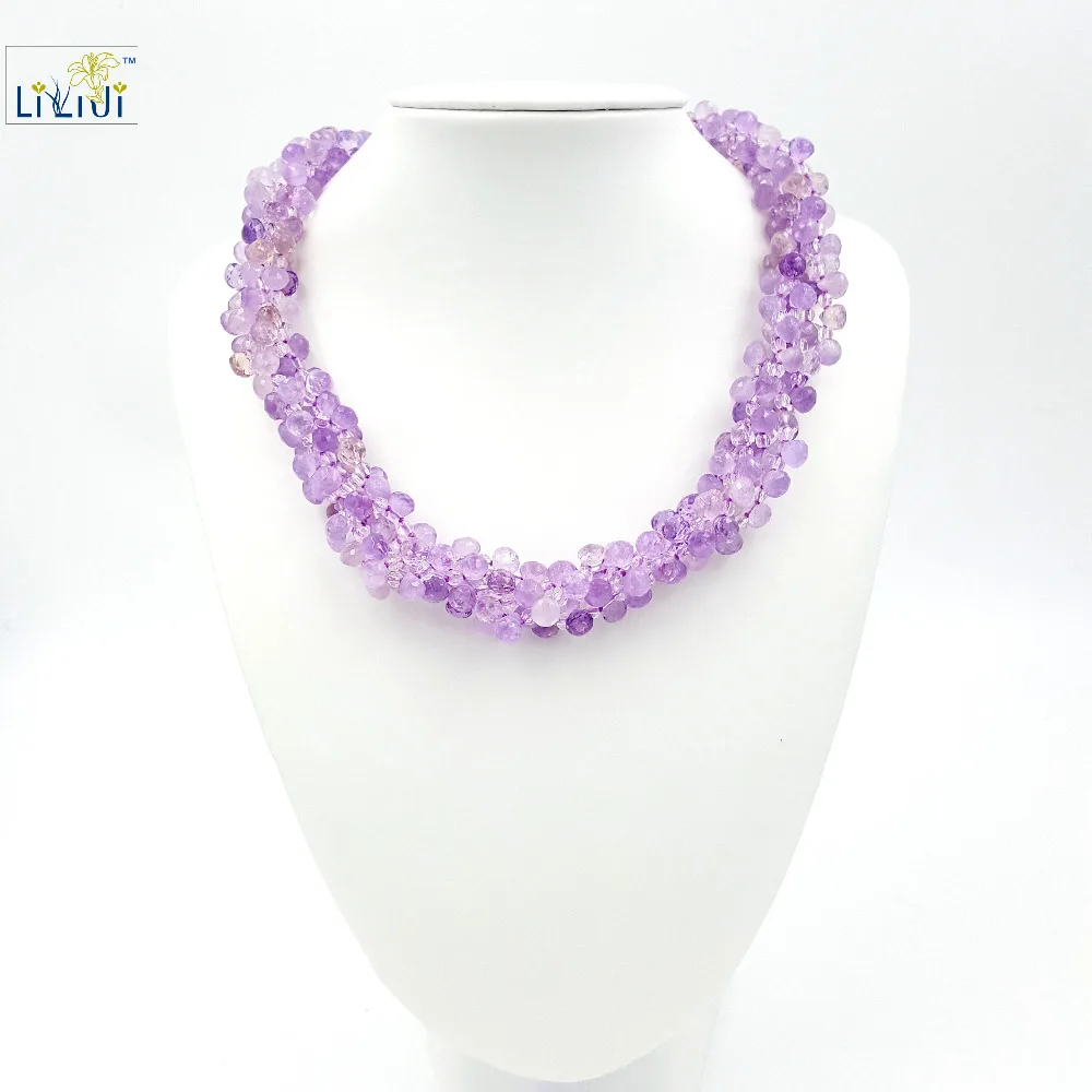 Natural Amethyst Tear Drop Beads ,Clear Quartz with 925 Sterling Silver Clasp Gold Plated Fashion women Jewelry Big Necklace