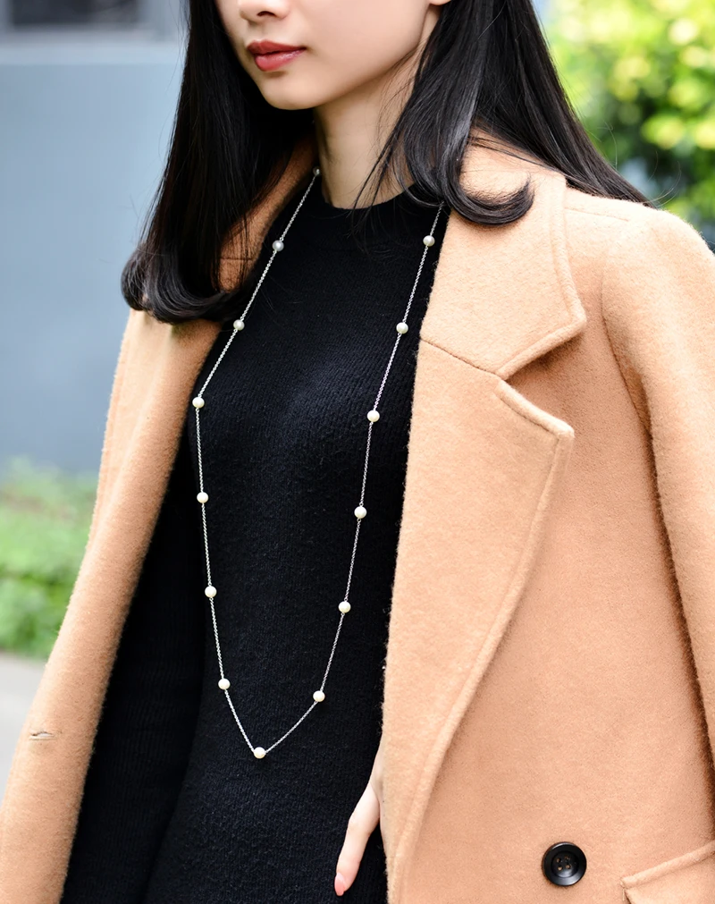 Brand Necklace Romantic 33 inch length Real 925 Sterling 9-10 cm Perfect Round Pearls Necklace ZZ0009