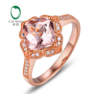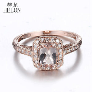 Solid 14K Rose Gold 7x5mm Cushion Morganite Ring Real Diamonds Engagement Wedding Ring Women Vintage Fine Jewelry Vintage