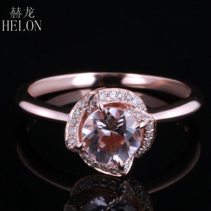 6mm Round Cut Genuine Morganite Solid 10K Rose Gold Pave Natural Diamonds Engagement Wedding Jewelry Lotus Flower Ring