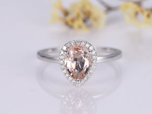 Morganite Engagement Ring 9x6mm Pear shaped Cut Stone,Diamond Band,Bridal Wedding Ring,Anniversary Gift Ring for women