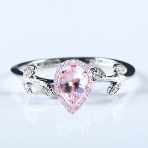 Solid 10k White Gold Rose Gold Anniversary Ring Natural Diamonds 5x7mm Pear 0.5ct Morganite glamorous romantic Jewelry