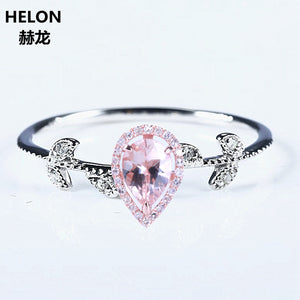 Solid 14k White Gold Rose Gold Natural Diamonds 5X7MM Pear Morganite Ring Wedding Engagement Fine Jewelry