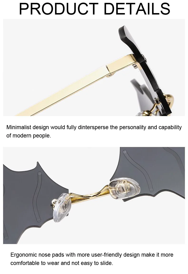 Bat Vintage Sunglasses Women Mirror Retro Rimless Sun Glasses Male Frameless Trend Small Glasses
