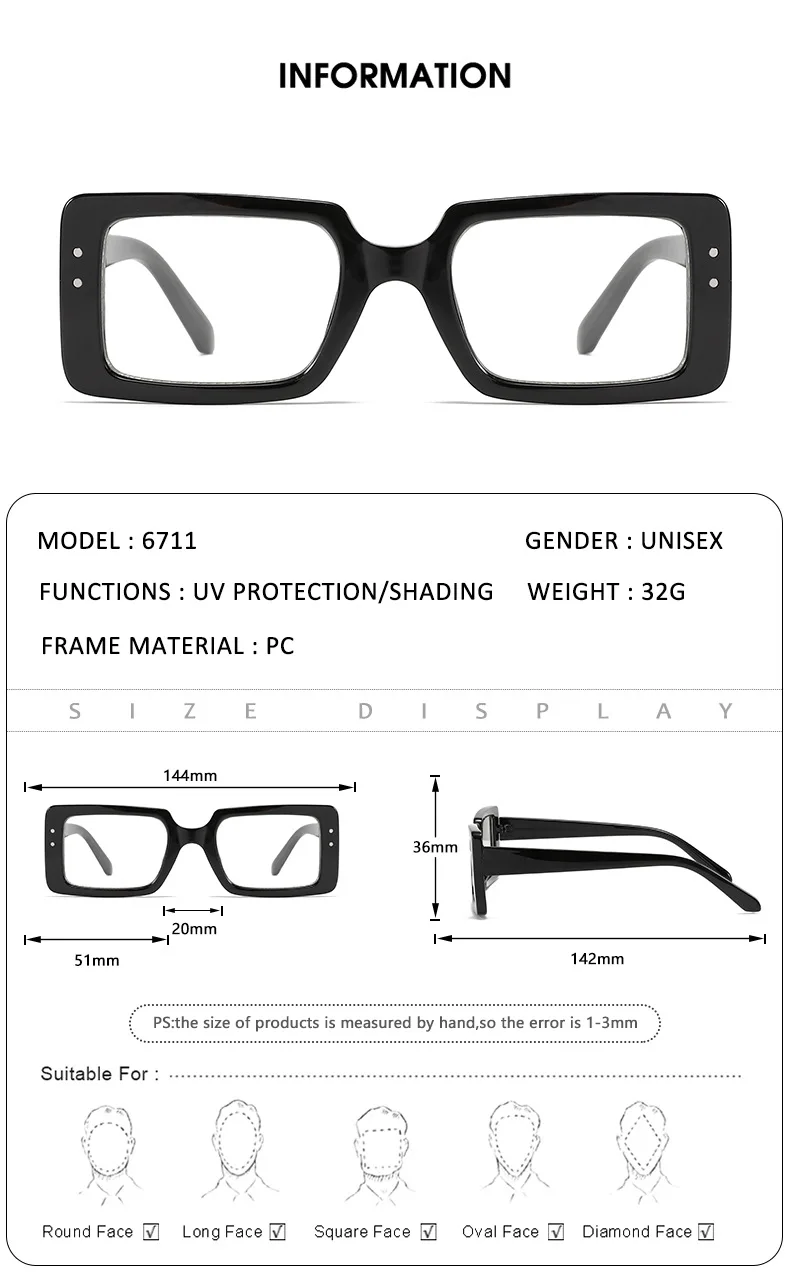 Model Number : Rectangle Sunglasses 196