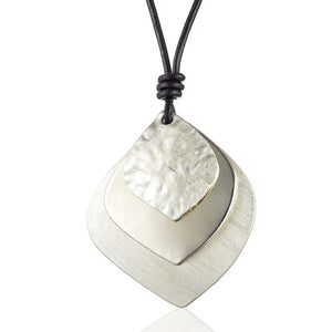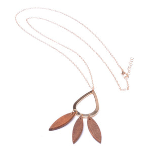 Moda donna nuovi gioielli all'ingrosso elemento in legno fogli di metallo ciondolo collana lunga personalità fatta a mano