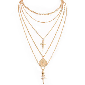 Collana con pendente a croce a tre strati in acciaio inossidabile da uomo di moda, catena 2 colori M29
