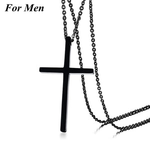 Cross Enamel Pendant Necklace Stainless Steel Black Gold Color For Men/Women Religious Christian Jewelry Christmas Gifts P581
