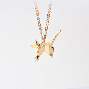 Origami Cat Kitty Dog Silhouette Pendant Necklace For Women Men Rose Gold Silver Black Minimalist Creative Animal Jewelry Gift