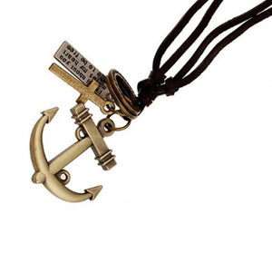 2018 New Vintage Genuine Leather Men Necklace Male Anchor Pendant Jewelry Chain For Men Collar Long Leather Cord Necklace
