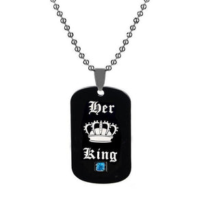 Her King & His Queen Couple Necklaces with Crown Stainless Steel Tag Pendant Necklace Best Gift Dropshipping