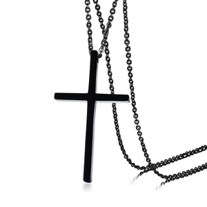 Mens Womens Cross Necklace Stainless Steel Chain Black/Rose Gold Color Suspension Pendants Couples Jewelry