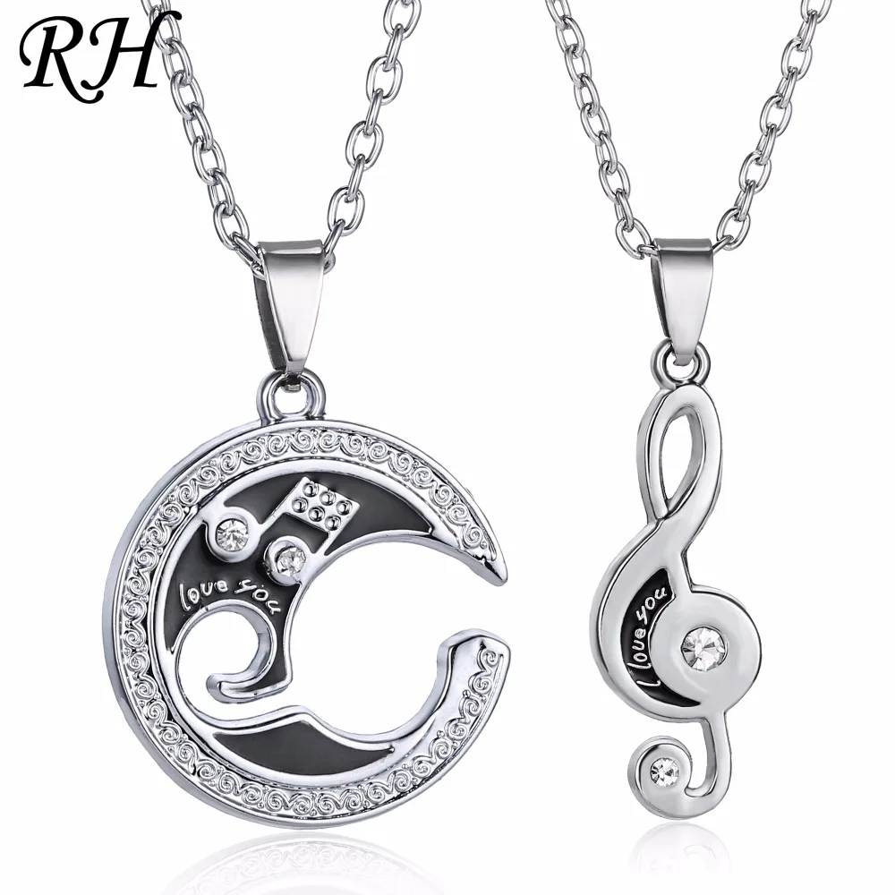 2 pcs/pair Couple Necklace For Lover Girlfriend Gift Set Musical note Valentine's D Necklace For Women Jewelry Paired Pendants