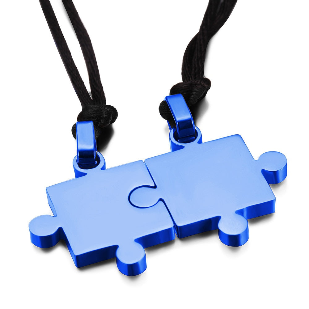 2pcs/Pair Stainless Steel Puzzle Pendant Necklace Rope Chain For Lover Couple Women Men Love Romantic Jewelry Valentine Gift