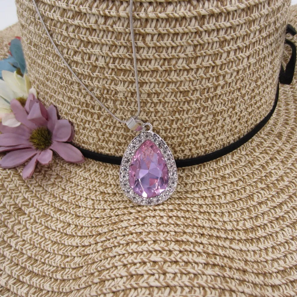 Collana per bambini, ragazze, donne, principessa Sofia, la prima catena, in acciaio inossidabile, con collane con ciondolo con amuleto a goccia viola