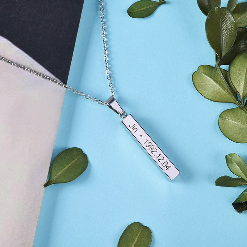 Hot BTS Members Name Date Cuboid Bar Pendant Necklace Fashion Jewelry Silver Titanium Chain Necklaces & Pendants for Fans