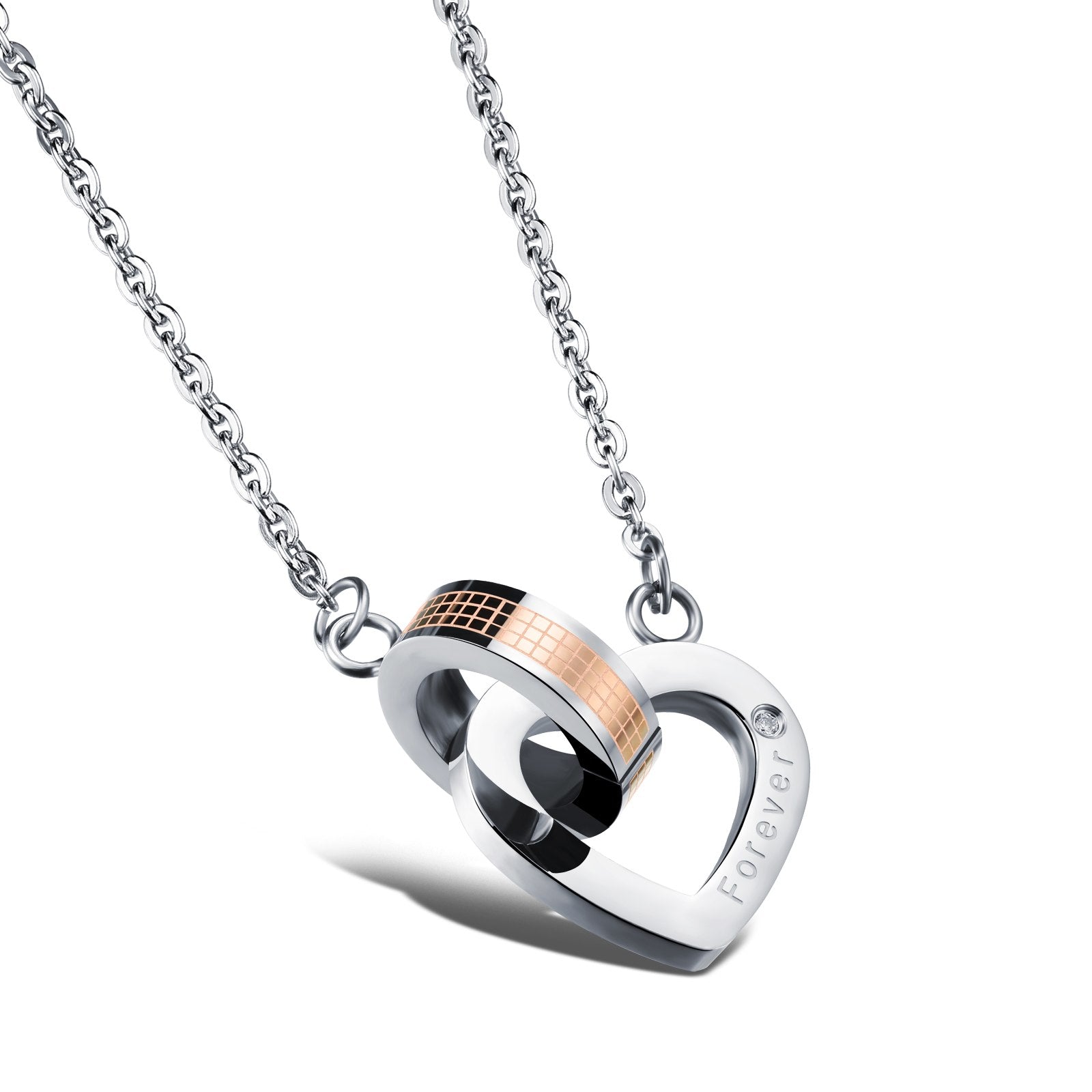 JeeMango Romantic Lovers' Pendant Necklaces Heart Design Stainless Steel Cubic Zirconia Women Men Jewelry Necklaces OGX1024